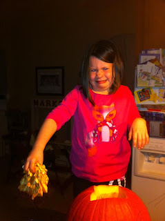 When the movie was over, it was time to carve pumpkins. Savannah's job was cleaning out the pumpkin guts.